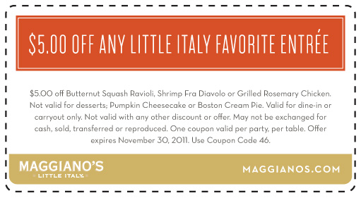 Dining Deals: Bertucci's Expires 11/30/08 & 12/31/08 Bertucci's coupon $5 off a food purchase of $30 or more (3 coupons - expiration dates: 11/30/08 & 12/31/08) One coupon good only Mon thru Wed. Want to get printable Bertucci's coupons via email? Scroll down to the "Restaurant Coupons Via Email" section at left!