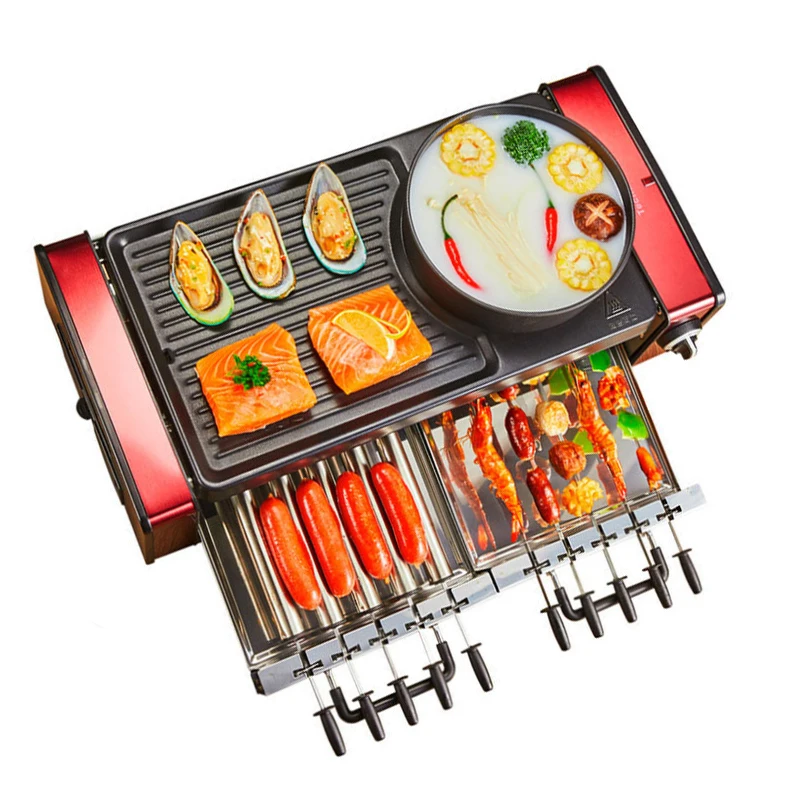 Roast-Shabu All-In-One Hot Pot BBQ Household Double-Layer Large-Capacity Automatic Rotating Ten-String Electric Barbecue Grill
